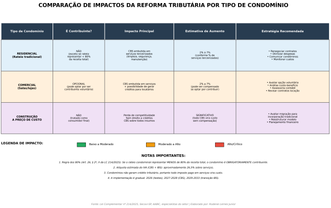 Os efeitos da reforma variam significativamente conforme a natureza e a estrutura de receitas de cada condomínio.