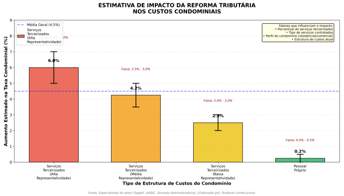 O reflexo mais sensível para os condôminos será o aumento da taxa condominial. Especialistas do setor estimam que, com uma alíquota de IVA projetada em torno de ,%, o aumento nos custos pode variar significativamente.