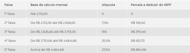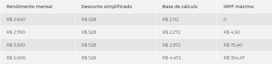 Vale observar que, por conta do desconto simplificado, quem ganha até R$2.640 estará isento do imposto.